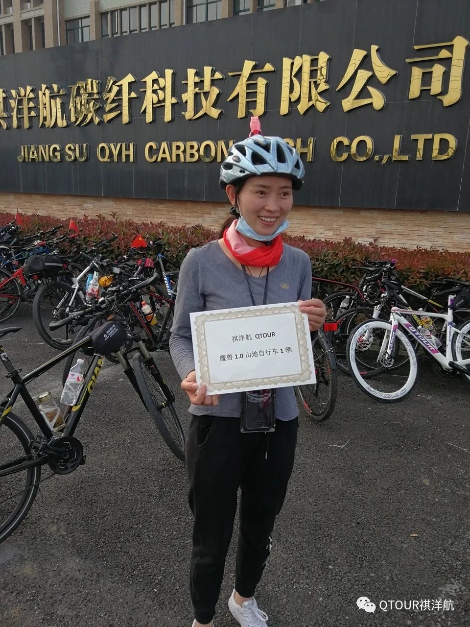 參觀完工廠,最后是壓軸的大獎時刻。QTOUR祺洋航直營店拿出一輛魔獸碳纖維整車進行抽獎,可以說誠意滿滿,另外還有騎行服、碳纖水壺架等眾多獎品。